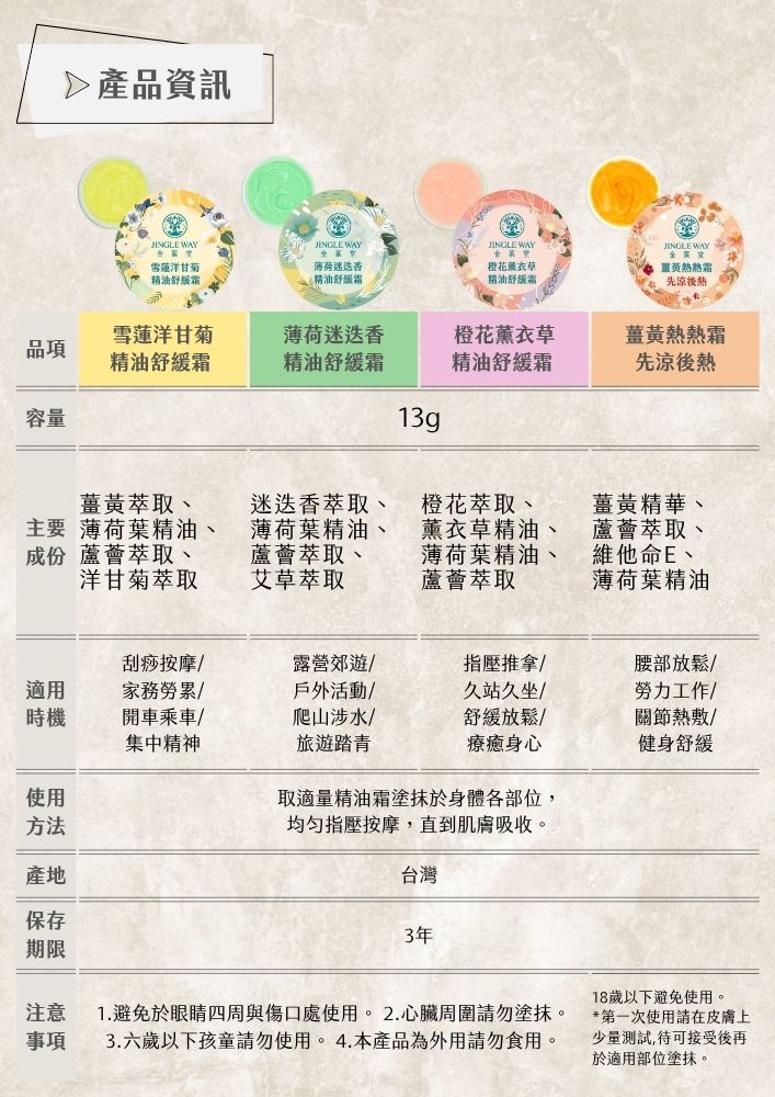 109 橙花薰衣草精油霜10g 588 金葉堂13g精油舒緩霜12入回饋組送絨布束口袋|清涼舒爽|經絡舒緩|療癒放鬆|水性配方|好吸收不黏膩 109 薄荷迷迭香精油霜13g 109 雪蓮洋甘菊精油霜10g