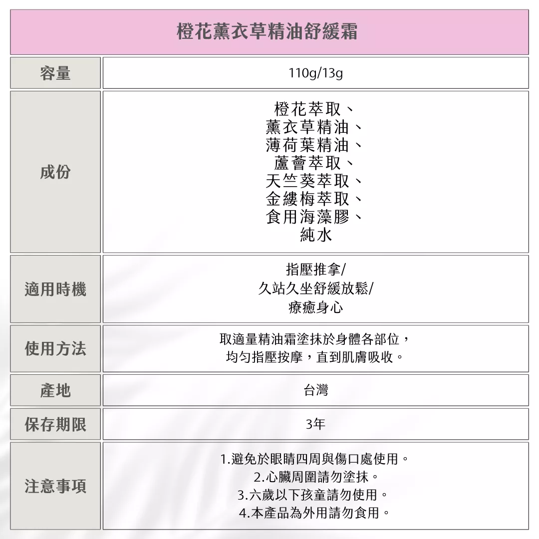 🌸 橙花薰衣草精油舒緩霜 💜