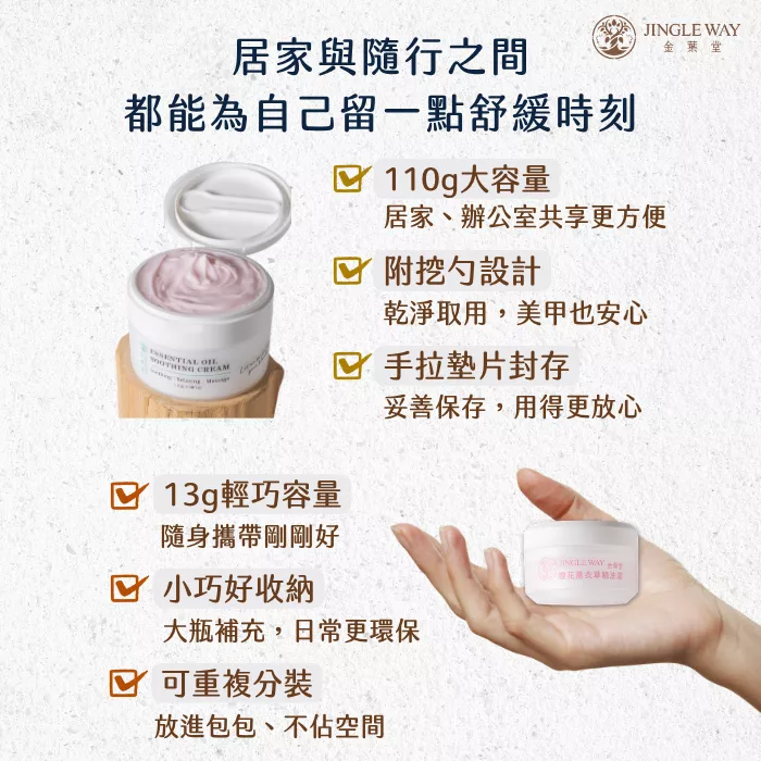 不論是辦公室提神、旅行郊遊、或是全家大小居家必備,13g 隨身瓶讓您把自然舒緩力帶進口袋裡!