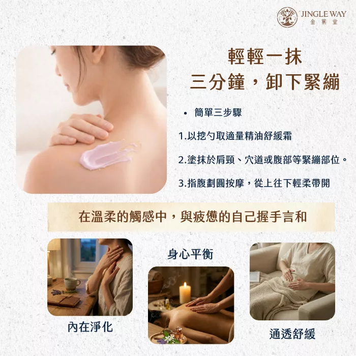 🔵清爽好吸收:質地輕盈不黏膩,讓身心快速放鬆。