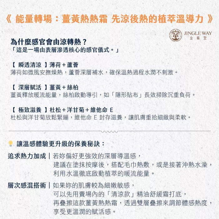 🔴先涼後熱配方:首創感官層次,溫熱深層滲透。