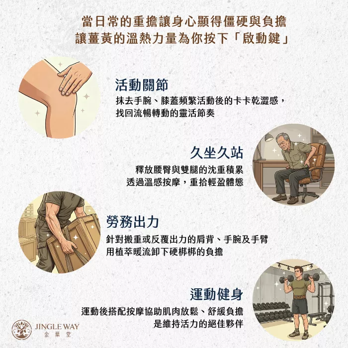 🔴迅速紓緩不適:針對筋骨不適、久站久坐及家務勞累,一抹有感。